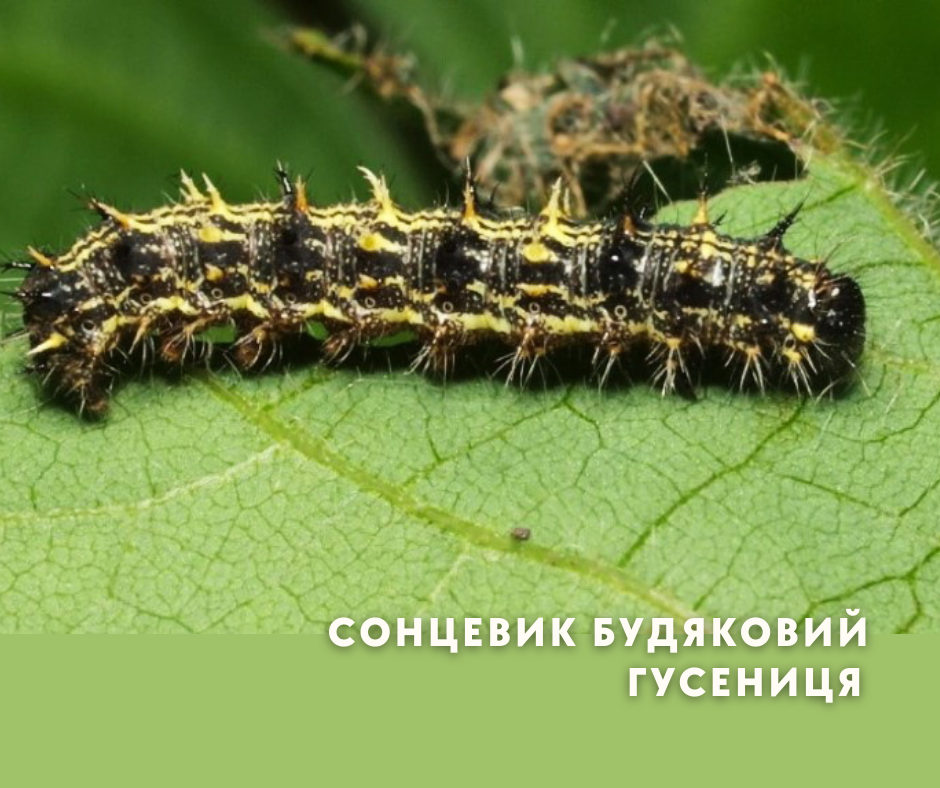 Наразі на різних культурах (горосі, кукурудзі) спостерігається поява гусениць бавовникової совки (фото 5), рекомендуємо проводити моніторинг появи гусениць на соняшнику у фазі утворення кошиків (маршрутне обстеження кошиків – візуальний огляд з лицьової сторони) і, у разі заселення гусеницями 15-20 % кошиків, застосувати інсектицидні обробки: