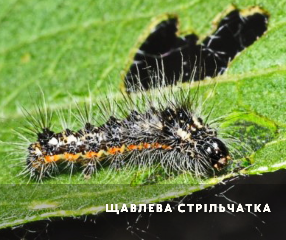 ‒ Шаман (хлорпірифос, 500 г/л, циперметрин, 50 г/л) у нормі 0,8-1,2 л/га.