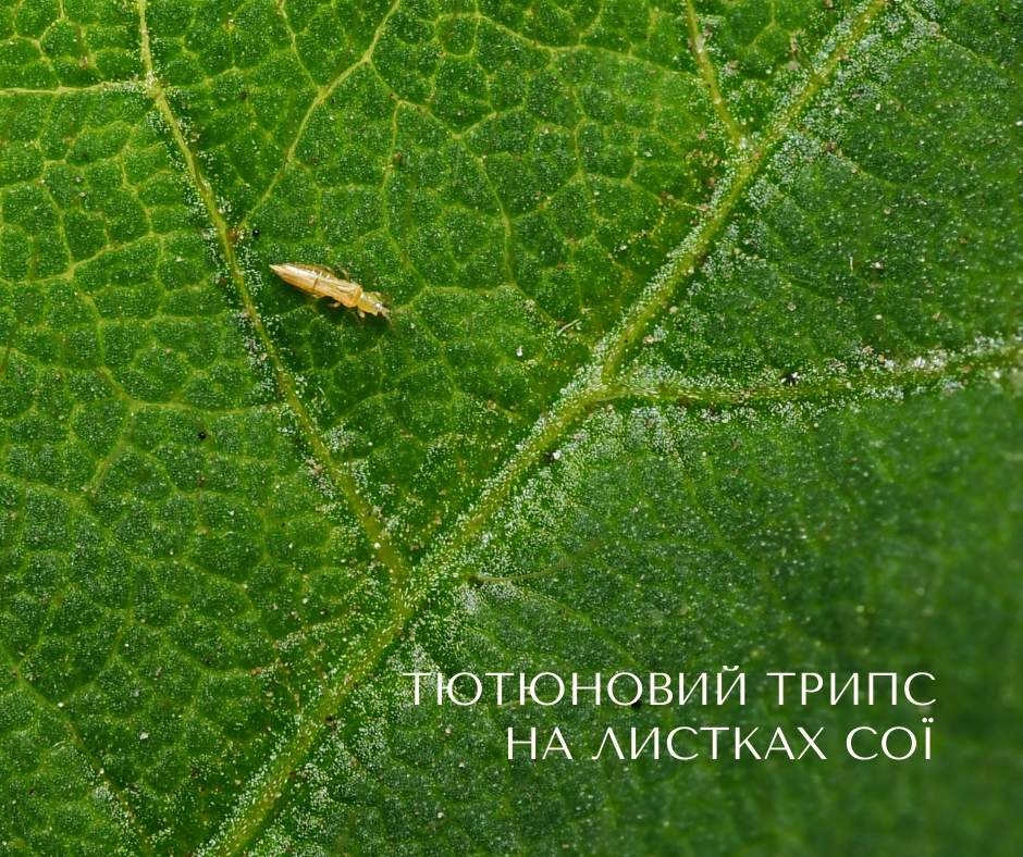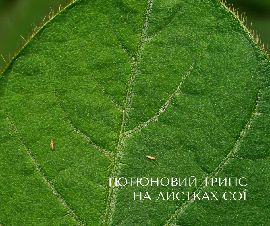 За результатами моніторингу сою активно заселяє комплекс шкідників: сисні ‒ тютюновий трипс, люцернова попелиця та листогризучі – сонцевик будяковий.