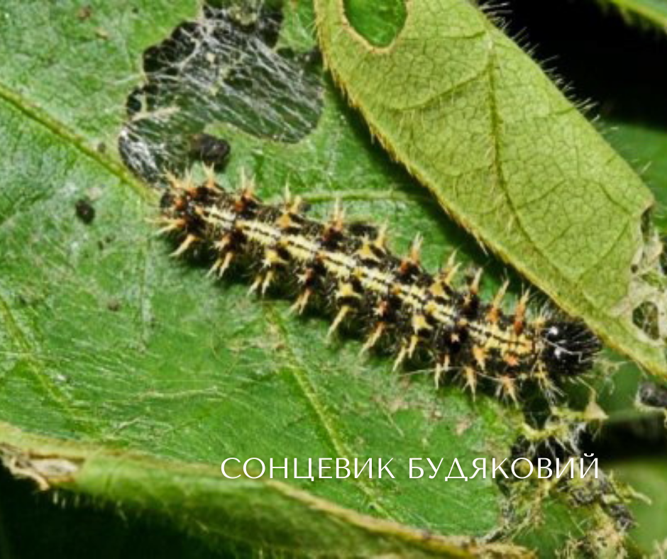 ✅ Сонцевик будяковий (фото 6-9) – метелики живляться нектаром бур’янів, відкладають яйця на листки сої, соняшнику та складноцвітих бур’янів. Гусениці живляться на листках – спочатку під захистом павутинки, пізніше згортають і з’єднують листки. В осередках масового розмноження можуть дуже сильно пошкодити листки сої.